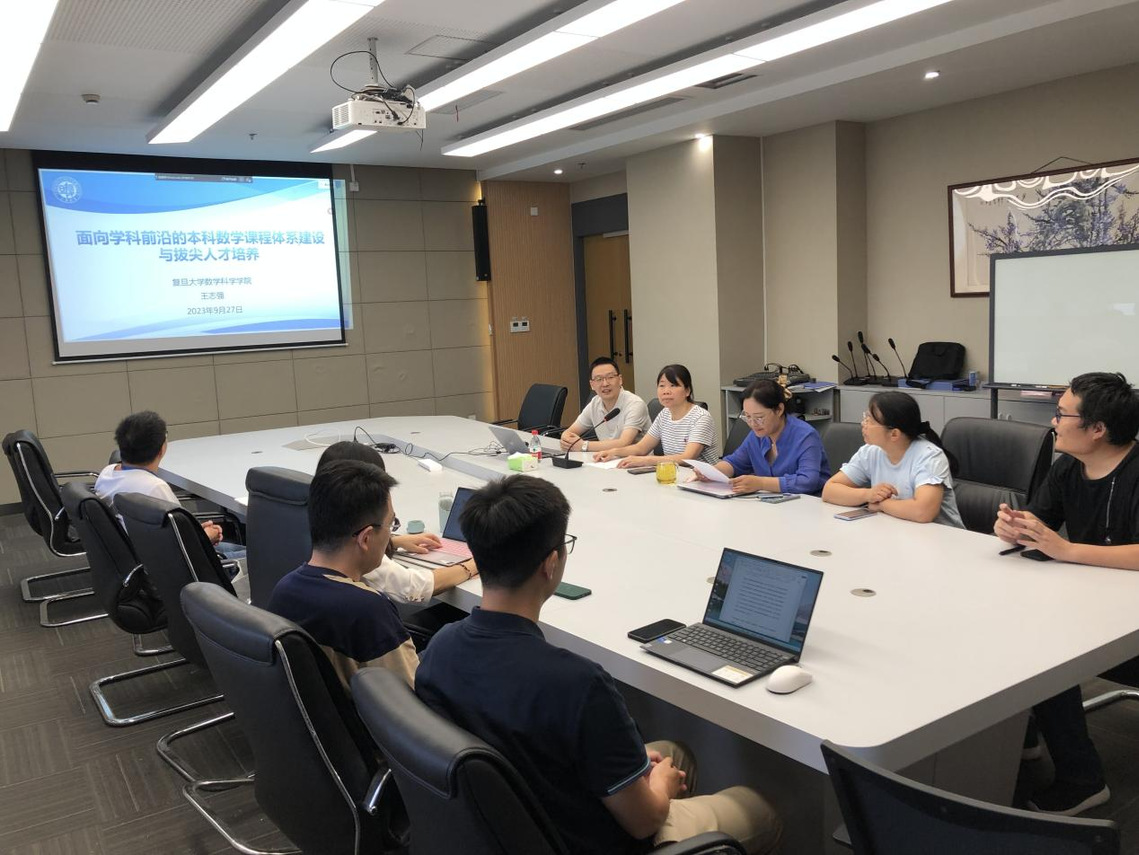 9月27号上午,复旦大学王志强教授应邀来公司报告,报告题目是“面向学科前沿的本科数学课程体系建设与拔尖人才培养”。公司各系、教研室负责人参加。报告由罗琳教授主持。 王志强,教授,博士生导师,太阳集团tyc33455官网副经理、教学指导委员会副主任,中国工业与应用数学学会理事。主要从事偏微分方程的控制及应用的研究,入选多项青年人才项目,包括教育部青年计划、上海市浦江人才计划等。曾获教育部高等公司产品成果奖全国二等奖、上海市高等公司产品成果一等奖。 此次报告,王志强教授主要介绍复旦大学数学英才试验班的建设与实践。他从国内沿袭已久的数学本科课程体系面临的问题和挑战开始,介绍了复旦数学如何重构并实践面向学科前言的本科课程体系,举措之一是构建“三层递进”课程体系,贯通多元成才路径;举措之二是锻造“一线一流”育人方针,集聚名师领衔课程建设,举措之三是聚力“三新三化”课程迭代,面向需求优化课程。复旦数学教学改革备受同行关注,示范效应显著,员工发展后劲明显提高。 王志强教授精彩的报告,给太阳集团tyc33455官网的教师在教学研究方面提供了新思路和新方法。报告结束,公司骨干教师纷纷就数学教学改革问题请教王志强教授。大学物理教研室占美琼老师请教了荣誉代数III课程的研讨模式等。统计系詹晓琳老师向王志强教授咨询了如何体现数学课程的特色,为数学专业员工量身打造课程。最后,罗琳教授就公司数学教学改革发展等方面的问题跟王志强教授进行了交流。