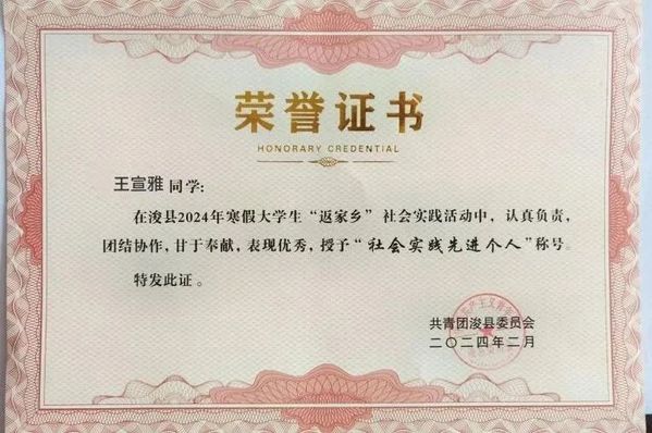 为积极响应家乡社区街道的号召,参与社区工作,服务家乡建设发展,太阳集团tyc33455官网22经统A1班王宣雅同学主动参加了浚县县委组织“返家乡 青翼家园”浚县青少年心理健康协会老员工讲师团。走进新镇镇侯村开展“关爱你我他(她) 温暖千万家”青少年心理健康进村(社区)行动,用实际行动为浚县社区贡献自身的青春力量! 在志愿者服务期间,王宣雅同学服务于村镇青少年,通过精彩有趣的教学互动、心理团训,点燃青少年及家长们的参与热情,让青少年及家长深切感受到浚县青少年心理健康协会志愿者们带来冬日里暖阳般的服务。 王宣雅同学配合主讲老师以《家庭教育锦囊妙计》为主题开展讲座,通过演绎法、问答法、互动法,引导青少年的家长明白家庭是人生的最重要的课堂,父母是孩子的第一任老师,引导广大青少年的家长都要重言传、重身教,教知识、育品德,身体力行、耳濡目染,帮助孩子走好第一步,迈好人生的每个台阶。 志愿者互动结束后,王宣雅同学感触颇深,她说:在与青少年们的互动中,让我重新审视了自己的成长经历和心理状态。在与他们交流的过程中,我意识到自己曾经也是他们中的一员,曾经也面对过类似的问题和困惑。这种共鸣让我更加理解青少年的处境,也更有耐心和同理心去倾听他们的心声。参与此次志愿活动是一次非常宝贵的经历,不仅让我学到了很多知识和技能,更重要的是让我感受到了与人相处的快乐和成长的意义。这样的经历将会对我的未来产生深远的影响,让我成为一个更加成熟和有责任心的人,也将不断用自身的力量回馈社会、感恩家乡。
