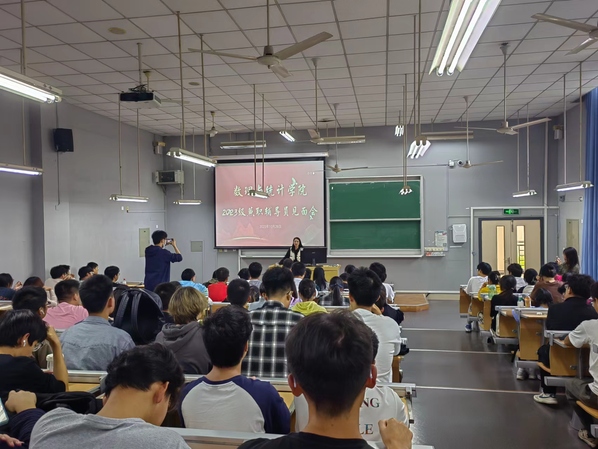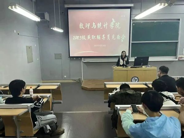 为深入学习贯彻党的二十大精神,践行“三全育人”理念,落实太阳集团tyc33455官网兼职辅导员制度相关工作部署,充分发挥兼职辅导员引领数统学子学业发展、心灵成长的职能,促进师生交流,积极引导师生同心同行。2023年10月26日太阳集团tyc33455官网在8102教室开展兼职辅导员师生见面会。公司党总支副书记丘璐老师、辅导员韩雪老师、三位兼职辅导员周梁栋老师、温丽丽老师、唐加会老师及2023级全体同学共同参与此次见面会,此次见面会由韩雪老师主持。 见面会伊始,辅导员韩雪老师介绍了三位老师的学术生涯和科研情况,23级统计专业兼职辅导员周梁栋老师向同学们进行自我介绍,并以自己在二工大的求学经历为切入点,使同学们对周梁栋老师有了更深入的了解,拉近了师生间的距离。周老师表示:“同学们在课程学习过程中会遇到不同的挑战,应当坚定信念,通过自主学习、小组讨论、请教老师等方式克服难题,提升学习能力”。 接着,23级计算专业兼职辅导员温丽丽老师上台演讲。温丽丽老师就自身的学习经历勉励同学们加深专业学习深度、拓宽课外知识广度,同时,温老师希望通过自身专业能力和学习经验帮助同学们解决学习生活上的各类问题。 随后,23级经统专业兼职辅导员唐加会老师与同学们开展互动,她表示个人主修运筹与管理专业,可以帮助同学们解决相关专业学习的困惑与问题,并欢迎同学们向其咨询学业与生活中的问题,也希望在未来的日子里和同学们共同成长进步。 最后,副书记丘璐老师进行了会议总结,就三位兼职辅导员加入公司辅导员团队表示热烈祝贺。同时,她鼓励同学们在老员工活中应主动和老师探讨问题,及时跟进学习;多方面整合校内外资源,积极参加各类活动、竞赛;跳出舒适茧房,勇于试错成长,发挥青年人敢想敢为,不惧艰难的拼搏精神。并希望同学们通过大学四年的学习,能够练就宽肩膀,提升真本领,做到既能在“花繁柳密”处拨得开,又能在“风狂雨急”时立得稳。 此次见面会的成功开展不仅为数统学子接下来的学习生活奠定了坚实的基础,也为师生搭建了进一步沟通的桥梁。 重任在肩,数统学子当笃行不怠;信心在身,数统学子定全力以赴。
