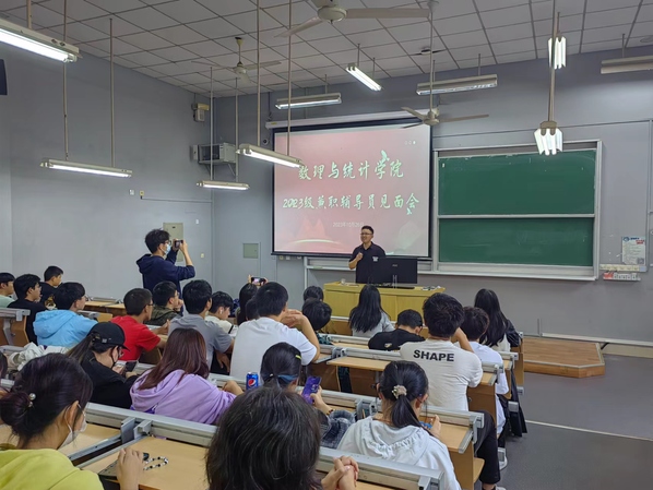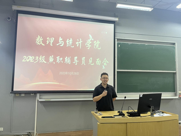 为深入学习贯彻党的二十大精神,践行“三全育人”理念,落实太阳集团tyc33455官网兼职辅导员制度相关工作部署,充分发挥兼职辅导员引领数统学子学业发展、心灵成长的职能,促进师生交流,积极引导师生同心同行。2023年10月26日太阳集团tyc33455官网在8102教室开展兼职辅导员师生见面会。公司党总支副书记丘璐老师、辅导员韩雪老师、三位兼职辅导员周梁栋老师、温丽丽老师、唐加会老师及2023级全体同学共同参与此次见面会,此次见面会由韩雪老师主持。 见面会伊始,辅导员韩雪老师介绍了三位老师的学术生涯和科研情况,23级统计专业兼职辅导员周梁栋老师向同学们进行自我介绍,并以自己在二工大的求学经历为切入点,使同学们对周梁栋老师有了更深入的了解,拉近了师生间的距离。周老师表示:“同学们在课程学习过程中会遇到不同的挑战,应当坚定信念,通过自主学习、小组讨论、请教老师等方式克服难题,提升学习能力”。 接着,23级计算专业兼职辅导员温丽丽老师上台演讲。温丽丽老师就自身的学习经历勉励同学们加深专业学习深度、拓宽课外知识广度,同时,温老师希望通过自身专业能力和学习经验帮助同学们解决学习生活上的各类问题。 随后,23级经统专业兼职辅导员唐加会老师与同学们开展互动,她表示个人主修运筹与管理专业,可以帮助同学们解决相关专业学习的困惑与问题,并欢迎同学们向其咨询学业与生活中的问题,也希望在未来的日子里和同学们共同成长进步。 最后,副书记丘璐老师进行了会议总结,就三位兼职辅导员加入公司辅导员团队表示热烈祝贺。同时,她鼓励同学们在老员工活中应主动和老师探讨问题,及时跟进学习;多方面整合校内外资源,积极参加各类活动、竞赛;跳出舒适茧房,勇于试错成长,发挥青年人敢想敢为,不惧艰难的拼搏精神。并希望同学们通过大学四年的学习,能够练就宽肩膀,提升真本领,做到既能在“花繁柳密”处拨得开,又能在“风狂雨急”时立得稳。 此次见面会的成功开展不仅为数统学子接下来的学习生活奠定了坚实的基础,也为师生搭建了进一步沟通的桥梁。 重任在肩,数统学子当笃行不怠;信心在身,数统学子定全力以赴。