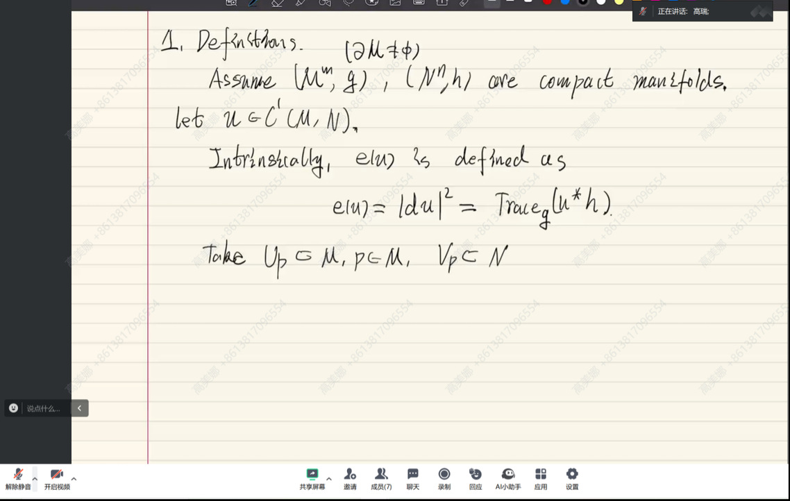 11月22日晚上,上海交通大学高瑞博士应邀为公司师生作题为:Bochner Formula for Energy Density and its Applications to Harmonic Maps的学术报告。此次报告由高美娜老师主持。 报告人高瑞,上海交通大学博士生,导师为朱苗苗教授,主要研究方向是二维具有共形不变性的几何变分问题,特别是二维调和映射和具有预定平均曲率曲面的紧性和存在性相关问题。目前已有相关成果被Proc. Amer. Math. Soc., Calc. Var. Partial Differ. Equ.期刊接收。 本次报告中,高瑞博士探索了微分几何中的Bochner技术,重点在于推导出调和映射的Bochner型公式及其应用。报告结束后部分老师与高瑞博士进行了深入交流和讨论。