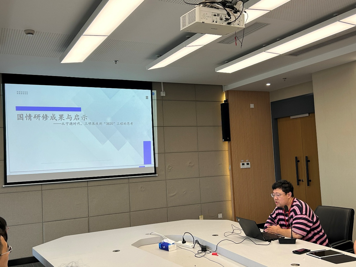在国情研修分享环节,张冠东老师以《国情研修成果与启示——从宁德时代、三明医改到“3820”工程的思考》为题,结合宁德时代、三明医改和“3820”工程等典型案例展开深入剖析。从新能源产业创新、医疗体系改革、城市规划建设三个维度,系统阐释了创新驱动、人民至上、系统思维等核心理念在高质量发展中的实践路径。张老师指出,宁德时代的科技突破展现创新引领作用,三明医改彰显以人民为中心的价值导向,“3820”工程则体现长远规划的系统思维。