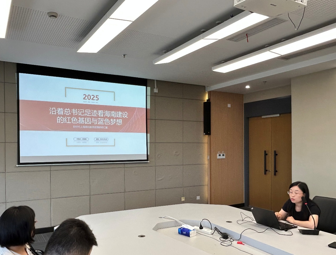温丽丽老师分享了《沿着总书记足迹看海南建设的红色基因与蓝色梦想》,学习党的十八大以来习近平总书记六次赴海南考察的讲话精神,通过对中国南海研究院、海南省博物馆、五指山革命根据地、毛纳村、崖州湾科技城等考察点的深入解读,生动展现了海南在传承红色基因与实现蓝色梦想中的实践探索,阐释了习近平总书记提出的全面深化改革开放和中国特色自由贸易港建设等重要战略部署,揭示了“向海图强”理念的深刻内涵。
